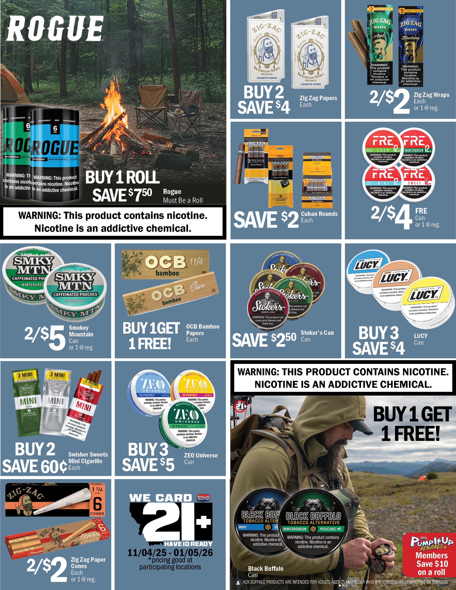 The following specials good only at participating Town Pump locations from 11/4/25 thru 1/5/26.
